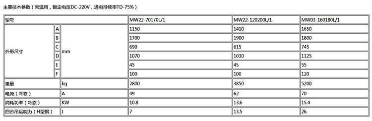 MW22系列吊運型材用 工字鋼、H型鋼用電磁鐵